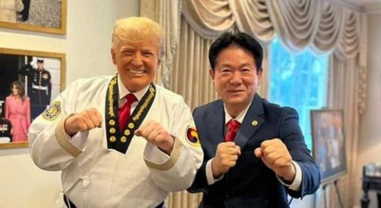 حصل الرئيس الأمريكي السابق، دونالد ترامب، على حزام دان الأسود التاسع الفخري لهذا النوع من فنون الدفاع عن النفس، من أكاديمية التايكوندو العالمية ومقرها كوريا الجنوبية.
