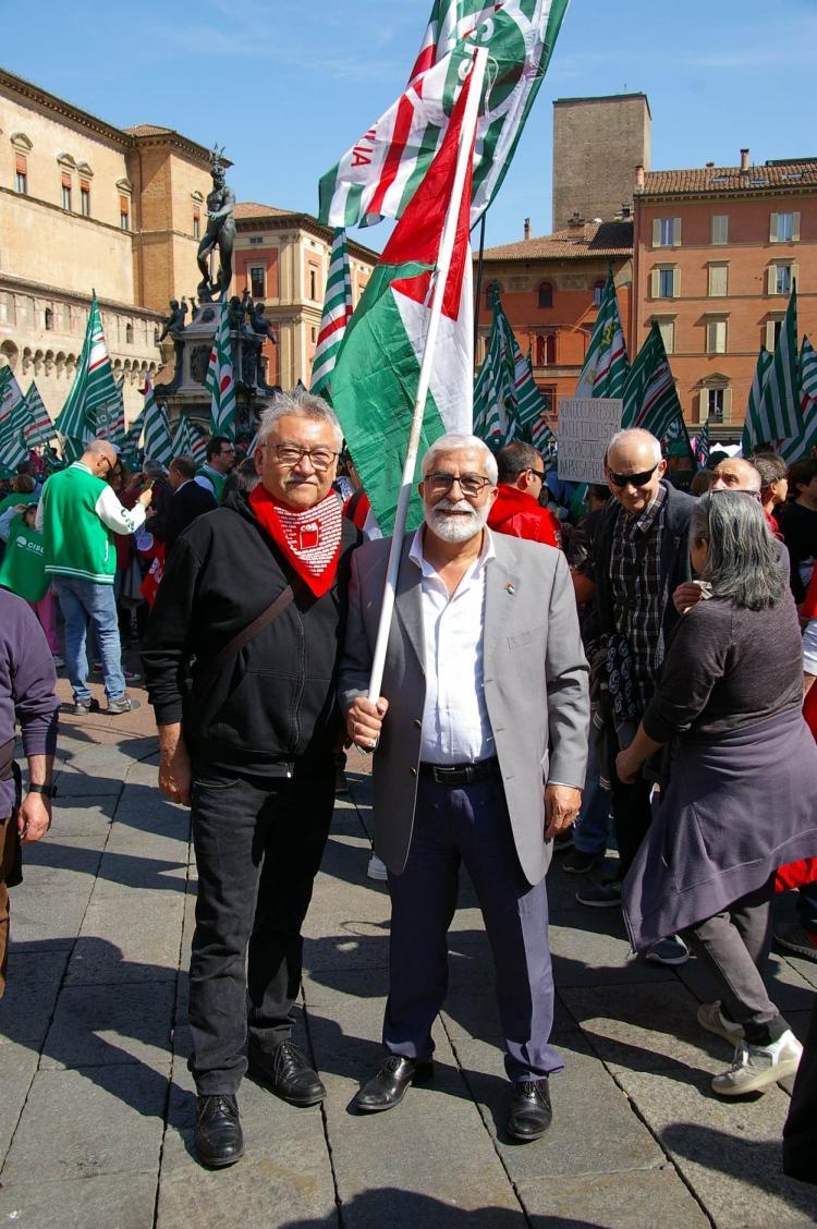 اليوم السبت ٦ مايو ٢٠٢٣ خلال المظاهرة الحاشده التي تم تنظيمها من قبل اتحادات نقابات العمال الكنفدرالية الثلاثة في مدينة بولونيا العريقة والتي تدعى ايضا المدينة الحمراء وذلك لانه ومنذ تحريرها من النازية والفاشية من قبل الفدائيين الايطاليين يحكمها اليسار الايطالي إلى يومنا هذا في استثناء بعض السنوات التي حكمها اليمين الايطالي. هذه المدينة التي تعرف ايضا بعراقتها التاريخية والعلمية والثقافية،حيث أنها تحتضن اقدم جامعة في اوروبا ( جامعه بولونيا العريقة ) حيث يعود تأسيسها إلى عام ١٠٨٨ .