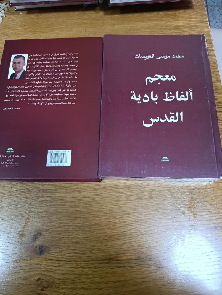 عن مكتبة كل شيء في حيفا صدر مؤخرا" معجم ألفاظ بادية القدس، للباحث محمد موسى العويسات، ويقع المعجم في ٣٤٤ صفحة من الحجم الكبير، وقد صمّم المعجم المجلّد ذي الغلاف المقوّى وأخرجه شربل الياس. الكاتب: محمد موسى العويسات من مواليد حيّ الشّيخ سعد في جبل المكبر عام ١٩٦٥، تلقى تعليمه الابتدائيّ والإعداديّ في مدارس جبل المكبر، والمرحلة الثّانويّة في مدرسة الرشيديّة في القدس، حاصل على شهادة البكالوريس في في اللغة العربيّة في جامعة بيت لحم، ودرجة الماجستير في الأدب العربيّ في جامعة القدس ( أبو ديس)، عمل معلّما في مدارس تربية القدس ( دار الأيتام سابقا) ما يقارب خمسة وعشرين عاما، كاتب وباحث لغويّ له عدد من المؤلفات منها: أسرار التكرار في سورة البقرة ( بيان القرآن)، وكتاب في مواجهة تهويد المكان وعبرنة اللغة، وكتاب الأمثال في خماسيّة مدن الملح لعبد الرحمن منيف، ولطائف في الصّرف والنّحو والبيان، وآخرها معجم ألفاظ بادية القدس، وله عدد من الكتب المخطوطة التي لم تنشر بعد، وله مشاركات أدبيّة ونقديّة في صحف محلّيّة وعربيّة.
